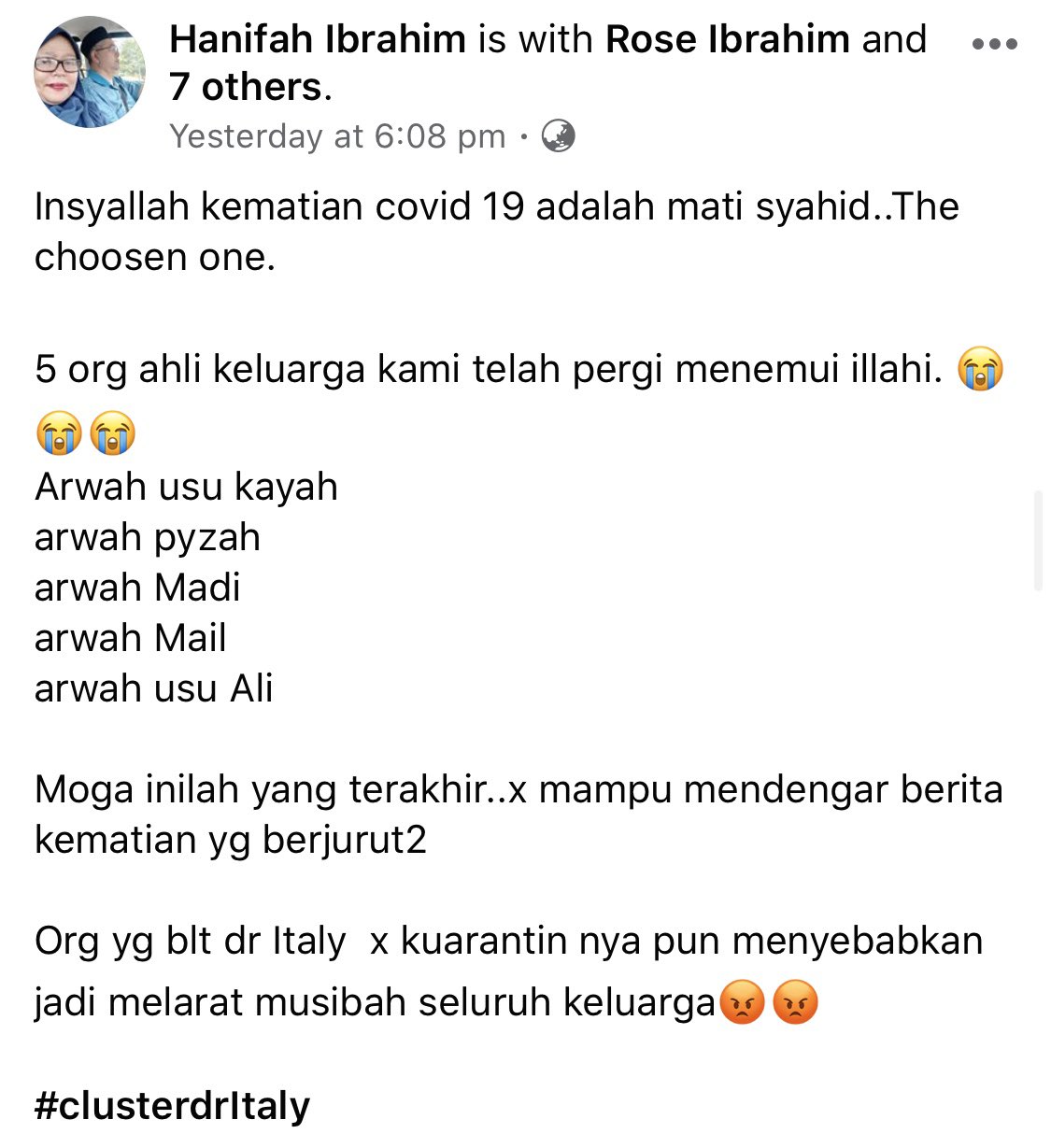 Cyberjaya Info On Twitter Allahu 5 Orang Ahli Keluarga Meninggal Sebab Kluster Itali Ni Salam Takziah Buat Keluarga Mangsa Mereka Yang Ada Sejarah Perjalanan Ke Luar Negara Kontak Rapat