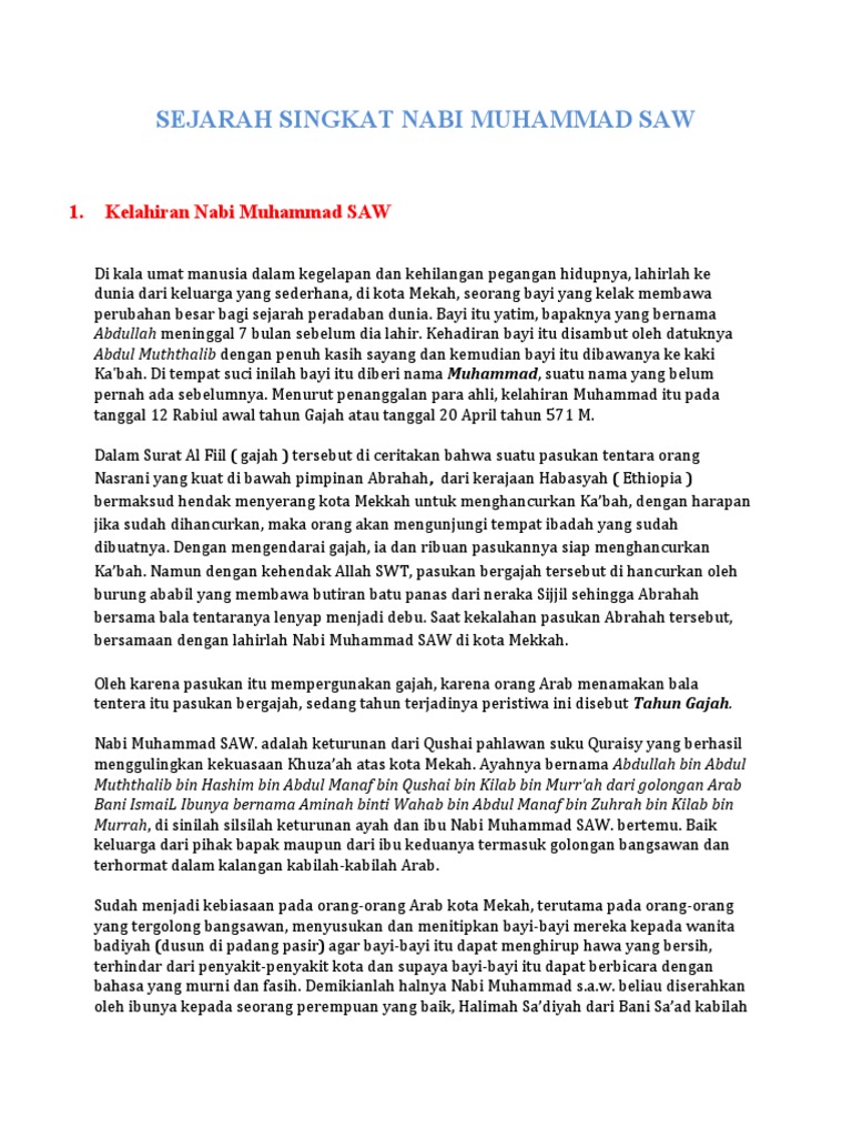 Sejarah Singkat Nabi Muhammad Saw Lengkap Docx