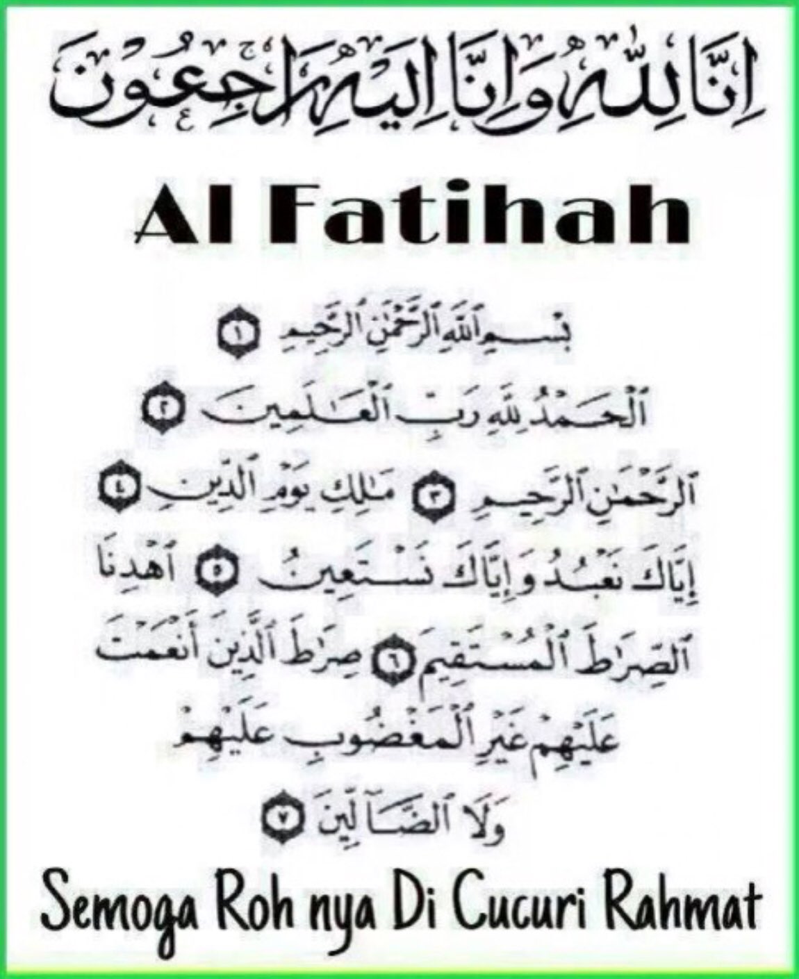 Semoga tabah dan sabar dalam menghadapi ujian. Semoga rohnya dicucuri rahmat nya dan ditempatkan dikalangan orang yang beriman dan soleh al fatihah. Al fatihah dan salam takziah kepada seluruh keluarga allahyarham.
