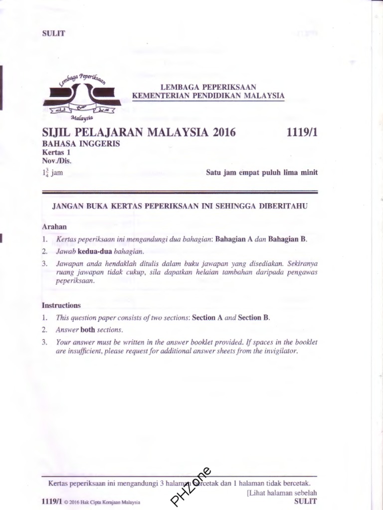 Kertas Sebenar Spm 2016 Bahasa Inggeris 1119 1 Communication Learning