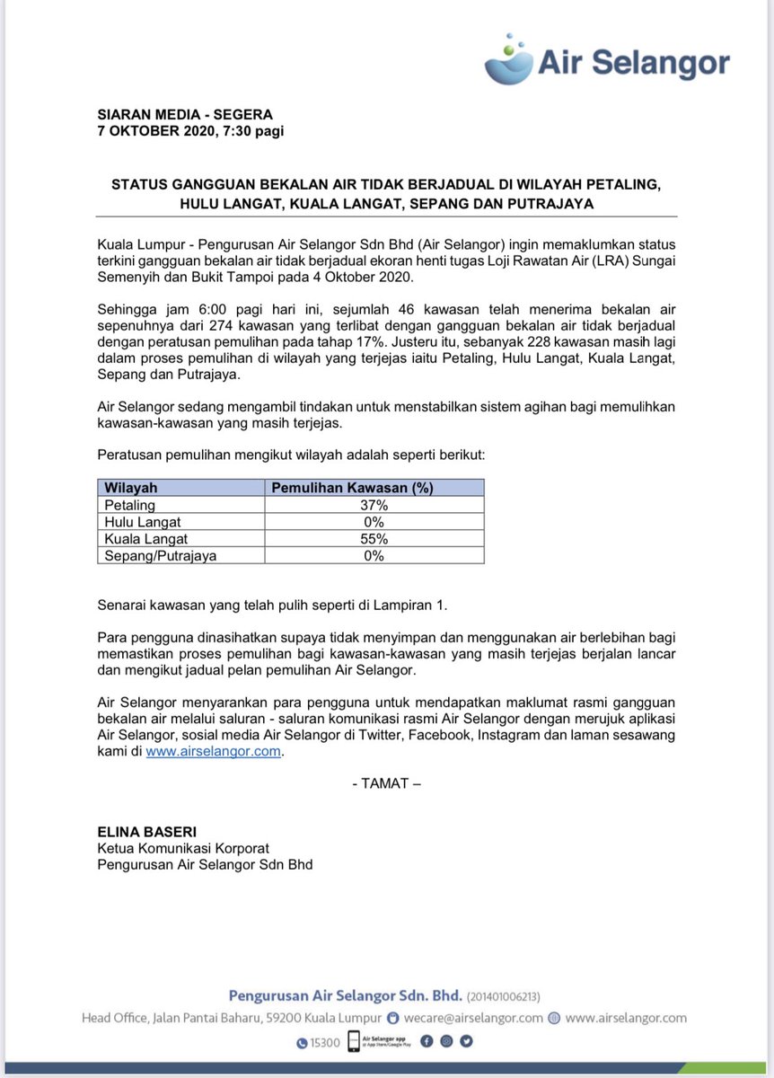 Air Selangor Siaran Media Status Terkini Gangguan Bekalan Air Berjadual Di 20 Kawasan Melibatkan Wilayah Gombak Facebook