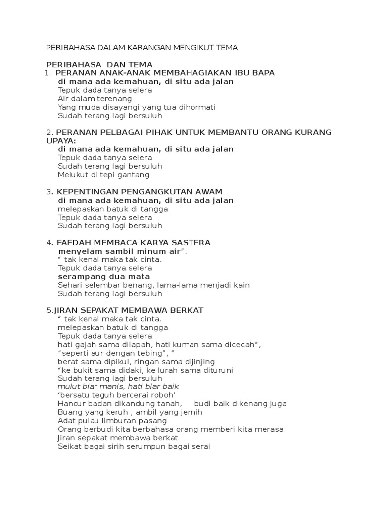 Peribahasa Dalam Karangan Mengikut Tema Docx