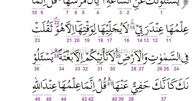 Al Quran Digital Online Indonesian Translation 7 187 Al A Raf Tempat Yang Tertinggi Ayat 187 الأعراف