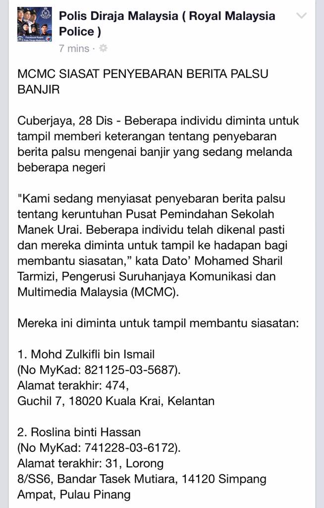 Haaziq Zahar Sa Twitter Hah Silalah Sebarkan Berita Palsu Lagi Mcmc Siasat Penyebaran Berita Palsu Banjir Http T Co P9akallugf