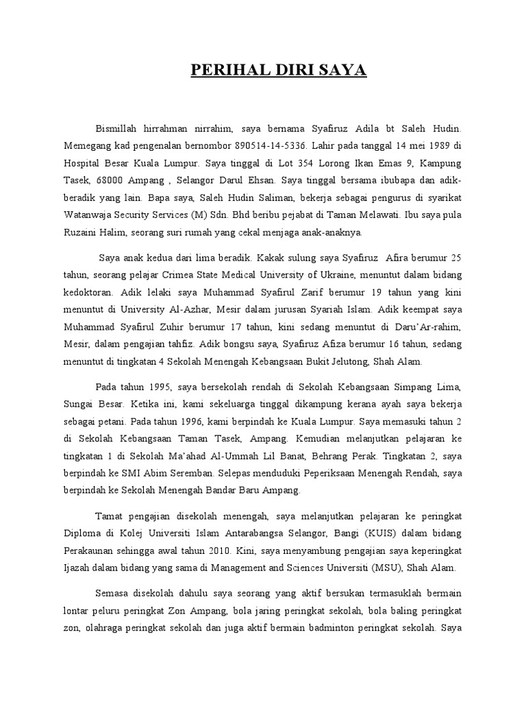 Contoh Karangan Tentang Diri Saya Rasmi Ru