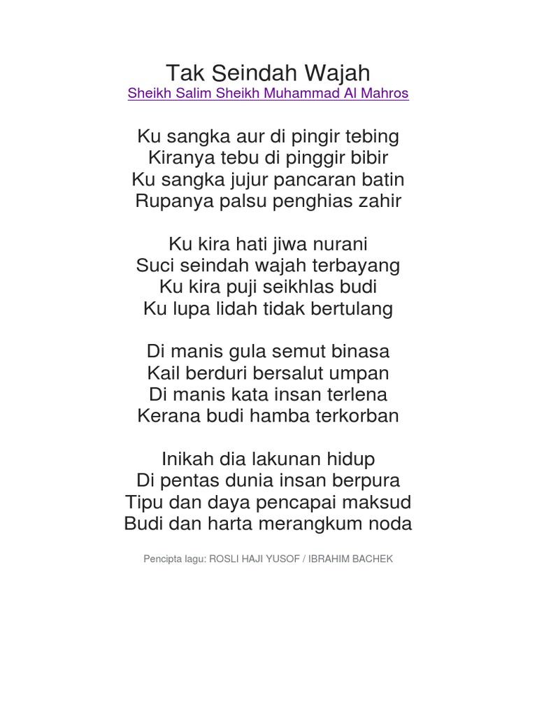 Lagu Melayu Lirik Lagu Tak Seindah Wajah