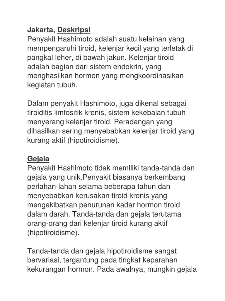 Hashimoto Tiroid Gejala Diagnosis Pengobatan