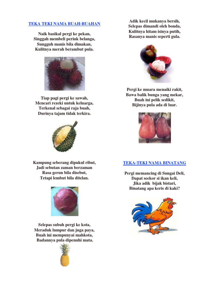 Bermacam Contoh Teka Teki Buah Buahan Untuk Kanak Kanak Yang Terbaik Untuk Para Murid Pekeliling Terbaru Kerajaan